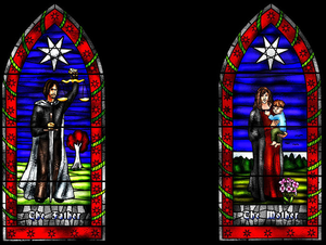 Lordin istuimen takana olevat lasimaalaukset